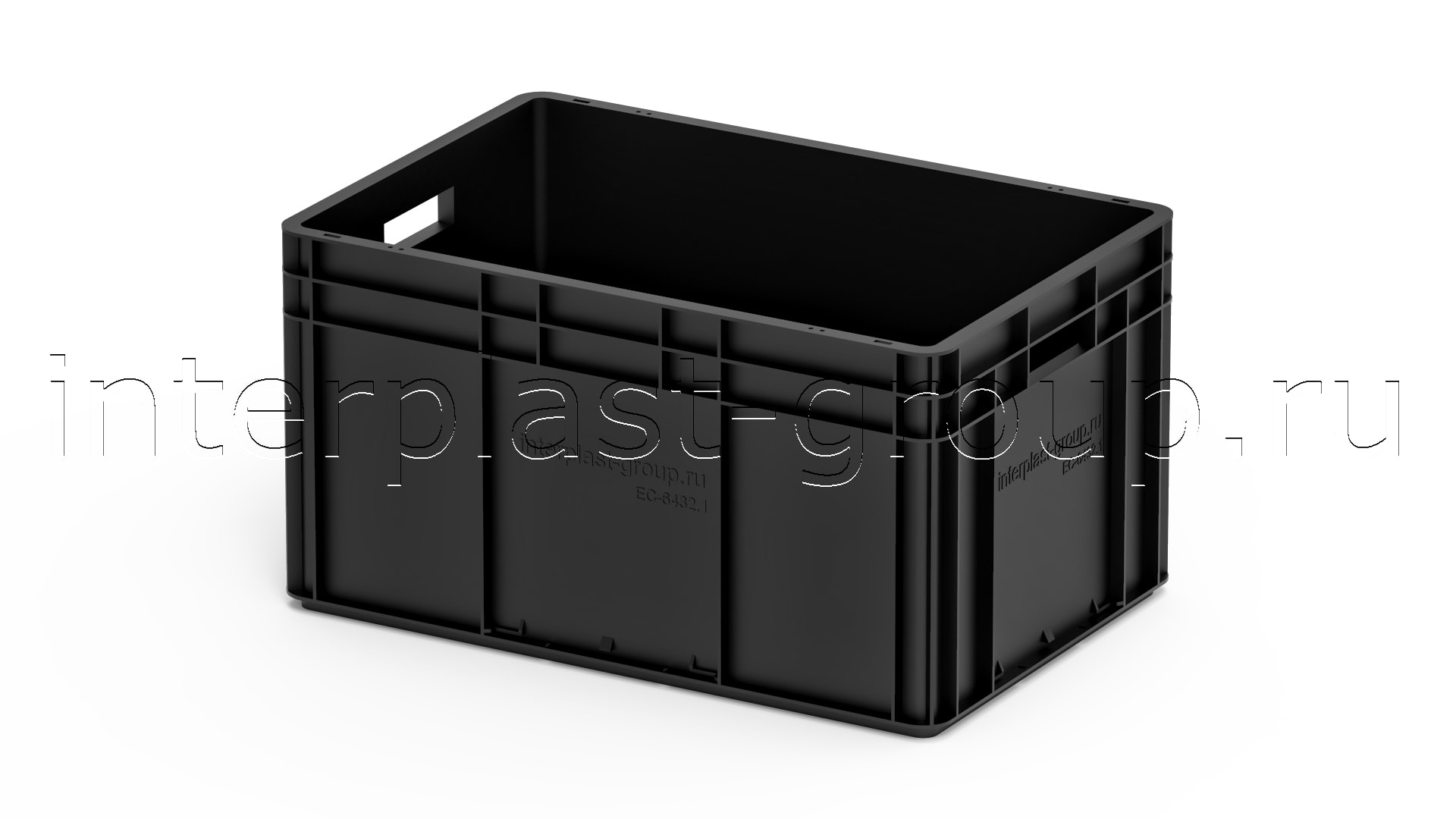 Евроконтейнер открытые ручки/сплошное дно (черный), 600x400x320 мм