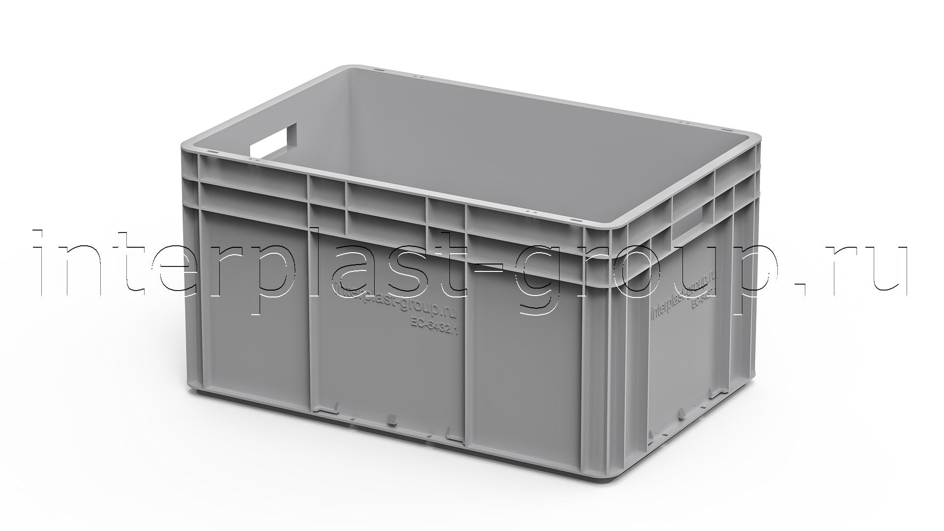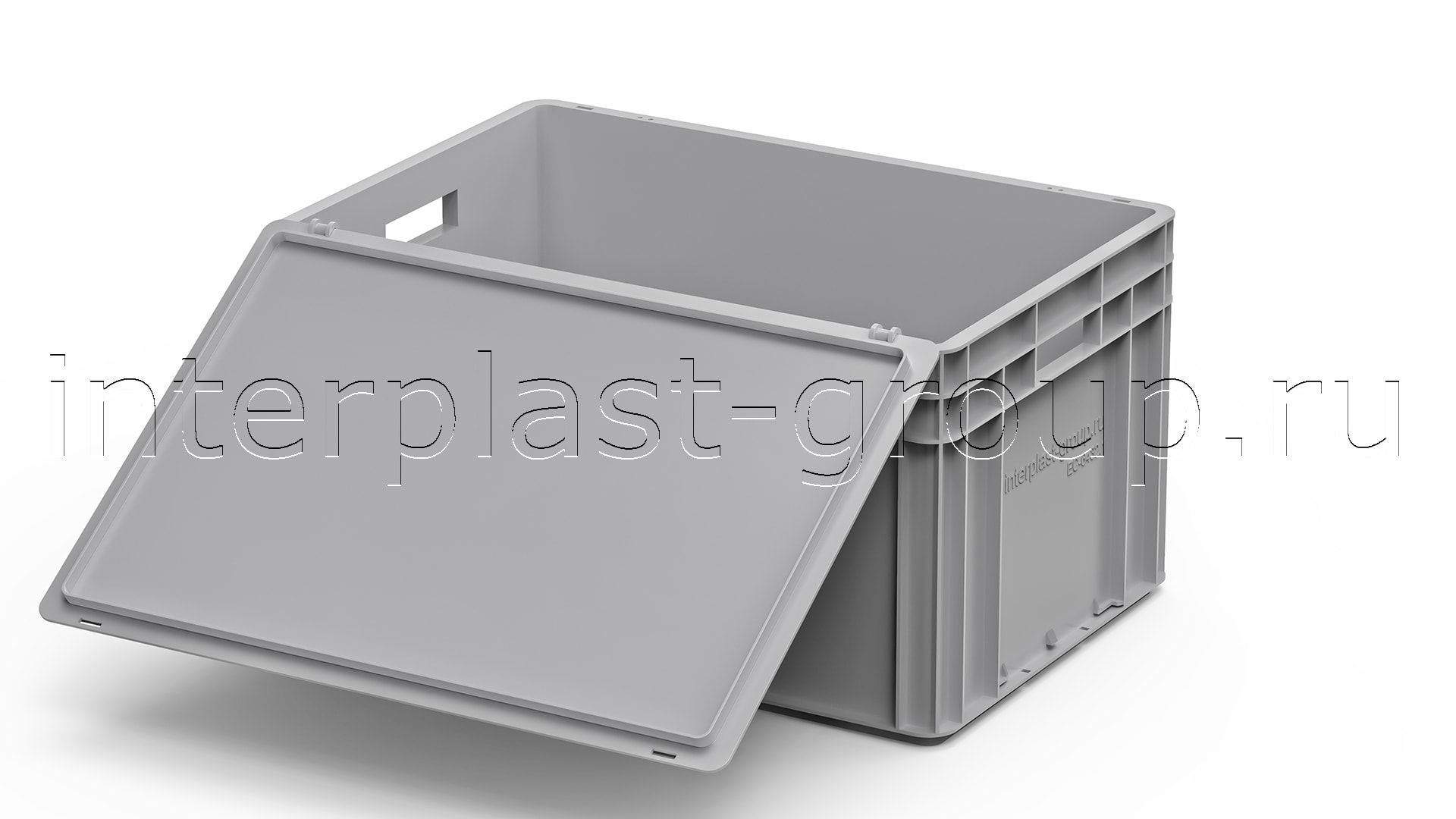Евроконтейнер открытые ручки/сплошное дно (серый), 600x400x320 мм