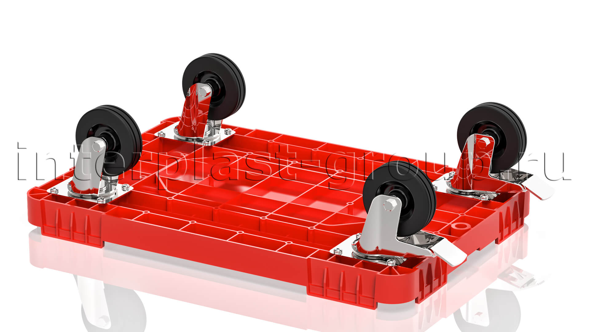 Тележка пластиковая сплошная 2 колеса с тормозом красная